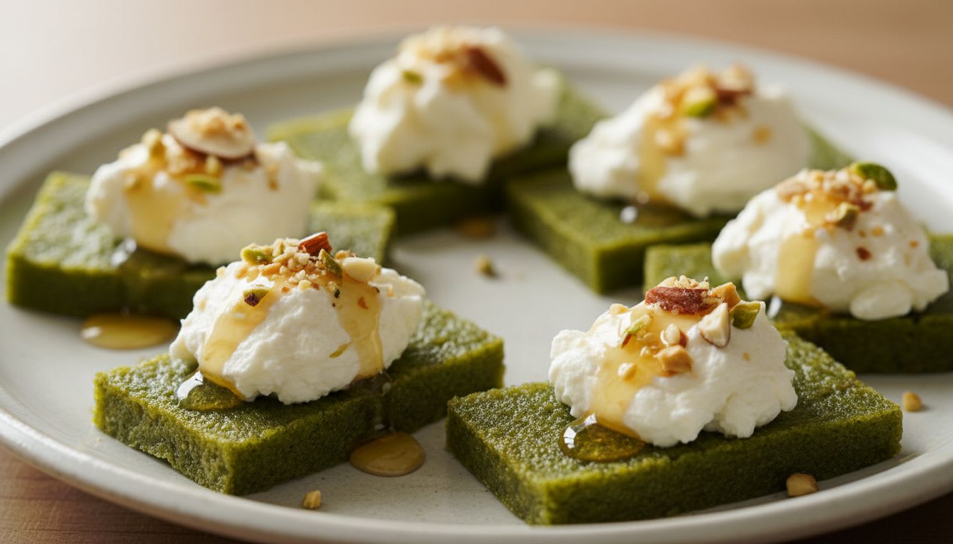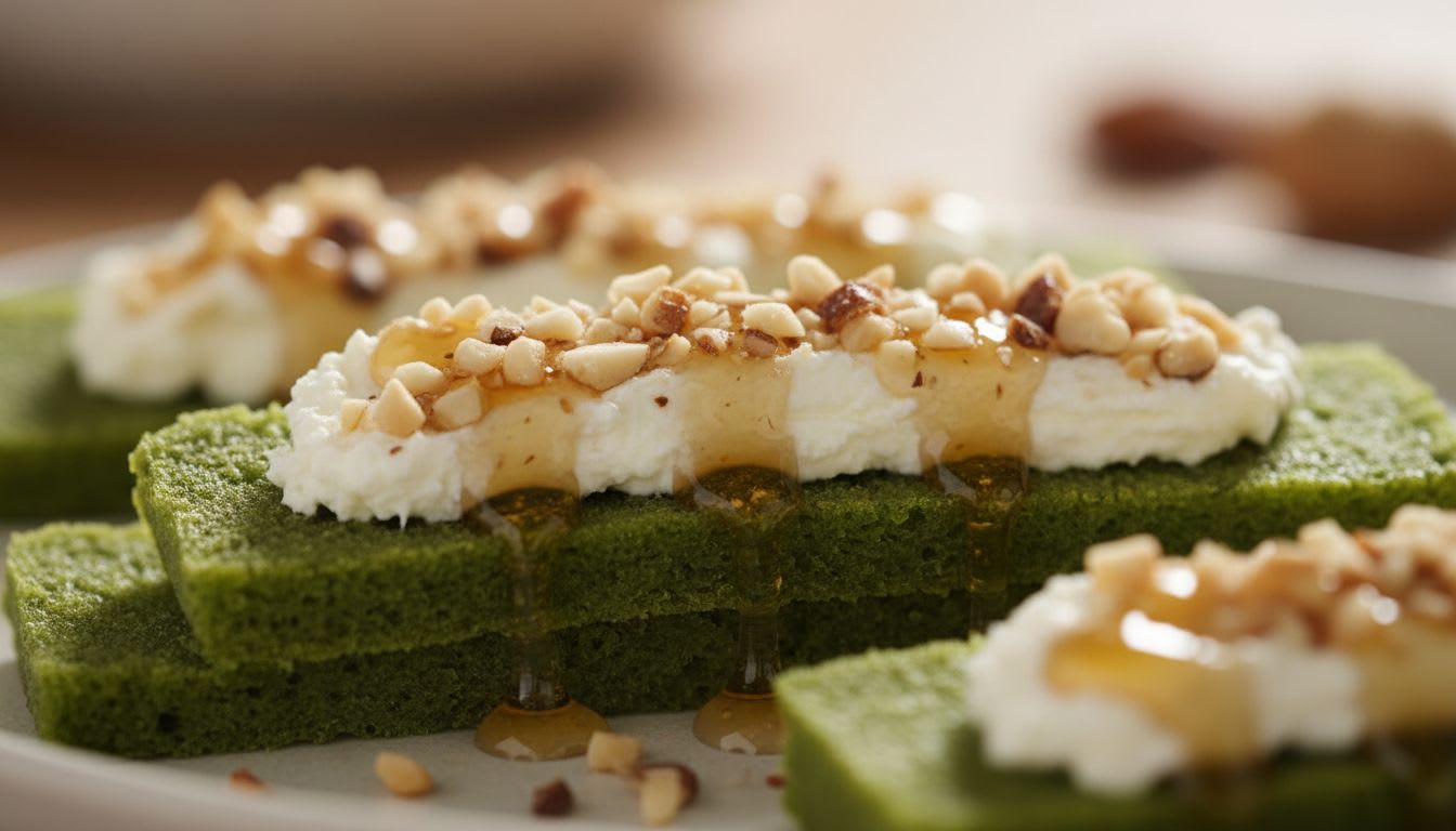 - 모시 쑥갠떡에 크림치즈와 꿀을 얹어 만드는 향긋한 카나페